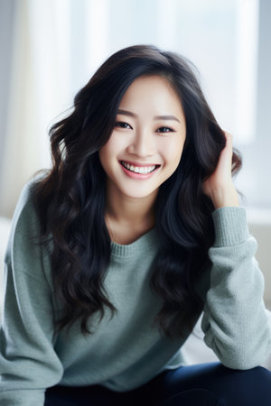Smiling young Asian woman at home
