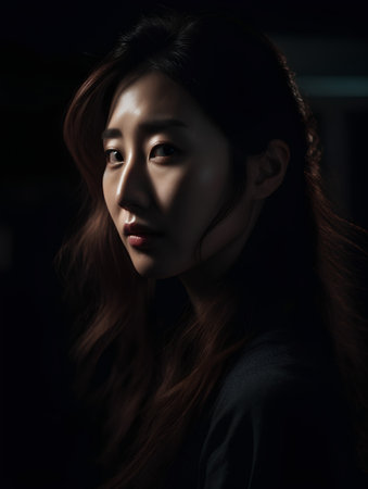 Portrait of a beautiful asian woman with long hair in the dark