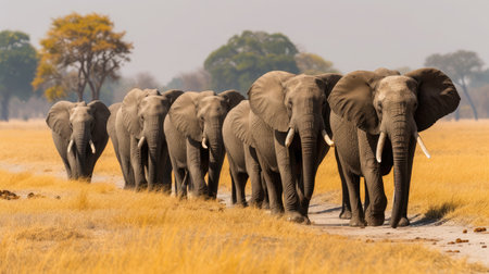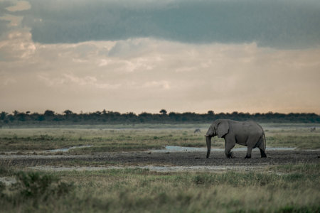 Wild African elephant walking through the savanna of Botswana. Africa.