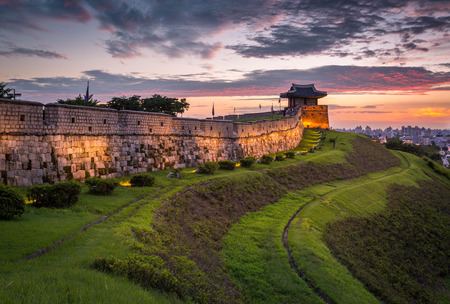 Korea,Sunset at Hwaseong Fortress in Suwon, South Korea.