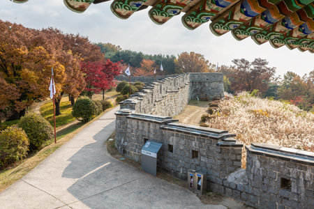 autumn landscape, scenery of Suwon Hwaseong in Korea