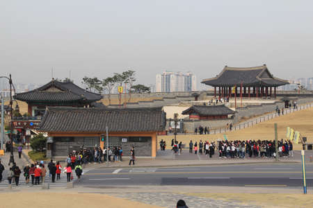 Suwon, Korea - February 10, 2016 : Hwaseong Fortress Korean traditional architecture