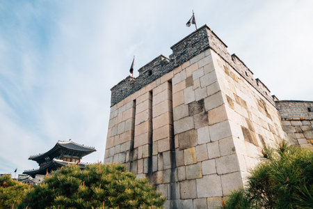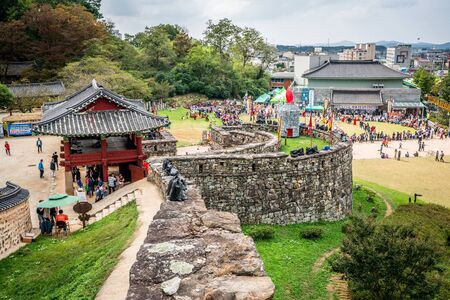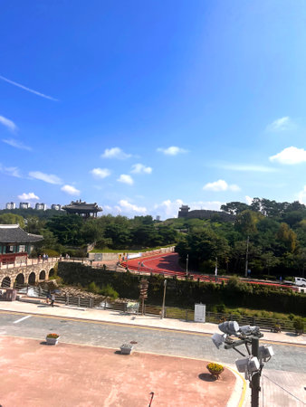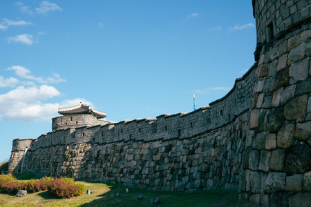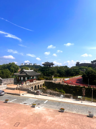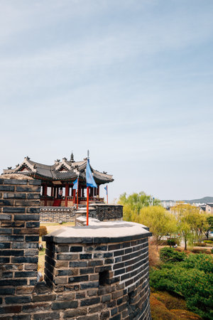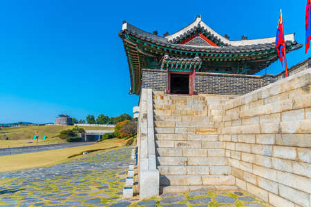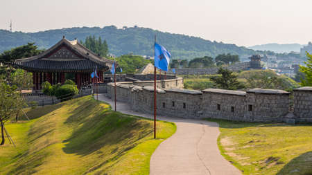 Suwon, South Korea - June 19, 2017: Hwaseong Fortress or Suwon Hwaseong is a fortification surrounding the centre of Suwon.