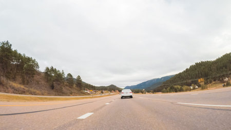 Colorado Springs, Colorado, USA-October 6, 2018 - Driving on mountain highway 24 to Colorado Springs in Autumn.