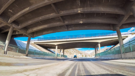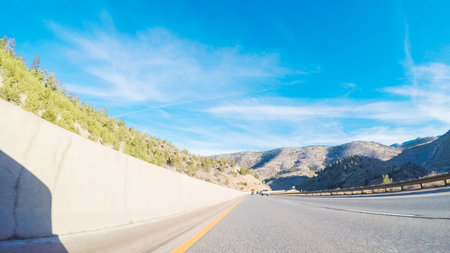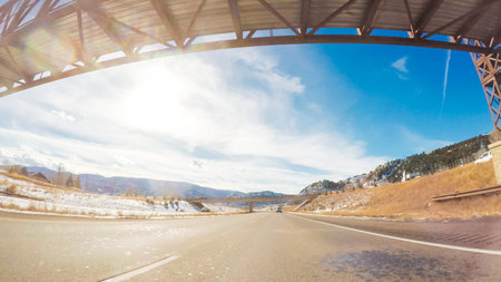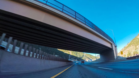 Driving on Interstate 70 from Denver to Utah passing the Rocky Mountains