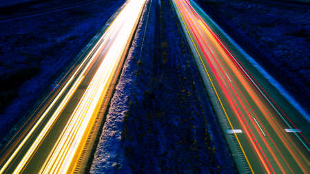 A Highway At Night With Light Trails A Captivating Image Of A Highway At Night With Long Exposure Light Trails. Concept Light Trails, Long Exposure Photography, Highway At Night.