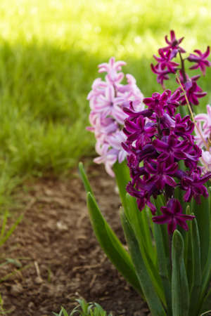 Hyacinths in the garden. Spring flowers. .