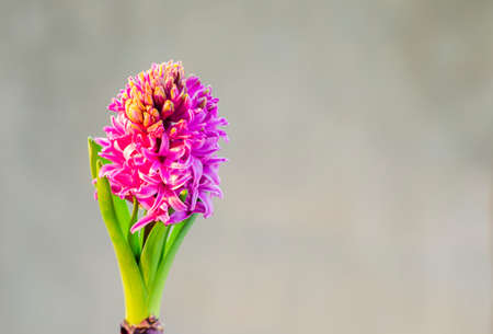 Festive concept from hyacinth flower in full bloom. Womens Day or Valentines Day. Template mock up of greeting card or text design. Close-up, copy space