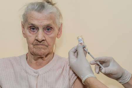 An elderly woman is being vaccinated against the virus