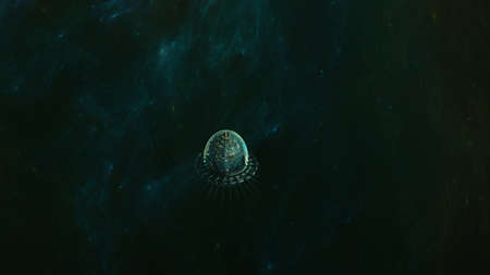 Glowing Futuristic Spacecraft And Nebula Cloud. Cosmic Art, Outer Space, Time Travel