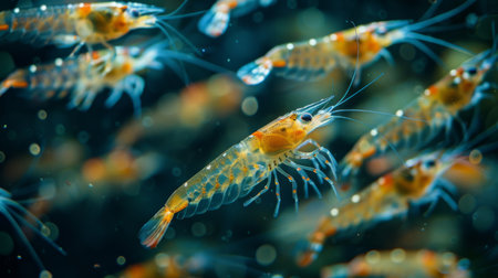 Colorful Shrimp Swim Gracefully in Clear Water, Showcasing Their Natural Beauty in an Underwater Habitat During Daylight Hours. Generative AI