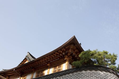 Korean wooden traditional house with black tiles in Gyeongbokgung, also known as Gyeongbokgung Palace or Gyeongbok Palace, the main royal palace of Joseon dynasty.