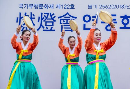 SEOUL - MAY 10 : Participants in a Culture Performance during Lotus Lantern Festival in Seoul , Korea on May 10 2018 The festival is a celebration of the birth of Buddha