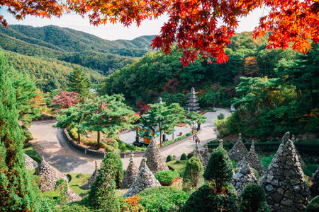 The beautiful scenery of Jeju Island's Hallim Park, showcasing various gardens and natural wonders.