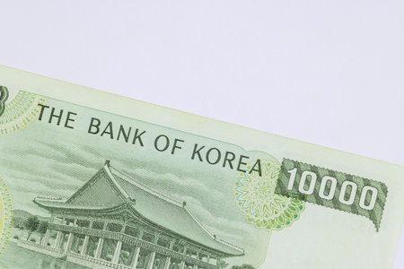 South Korea 10000 won banknote currency close up macro, Korean money.
