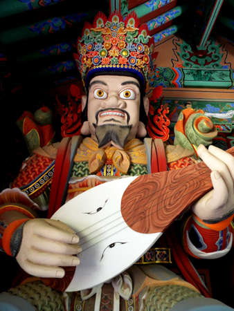Beomeosa, Busan, South Korea, August 27, 2017: Sculpture of a musician in one of the temples of the Beomeosa Buddhist temple complex. Busan, Korea.