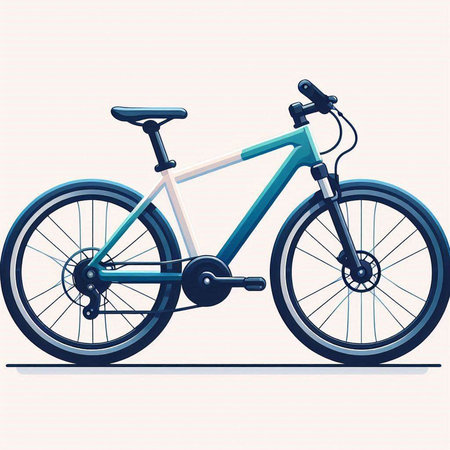 Vector illustration of a blue bicycle on a white background. Side view.