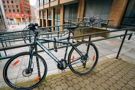 Tel Aviv Israel February 20, 2020 View of bicycle parked in the streets of Tel Aviv in the afternoon