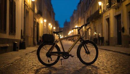 Nighttime Bicycle on Cobblestone