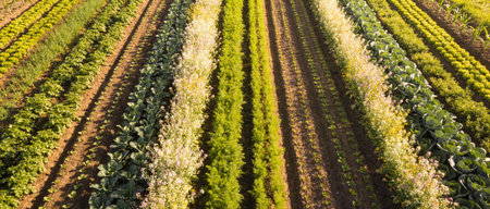 vegetables growing on a field in the light of the setting sun