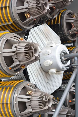 Detail of space rocket engine. Part of the rocket, close-up. Science and technology