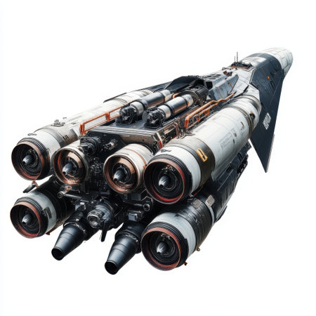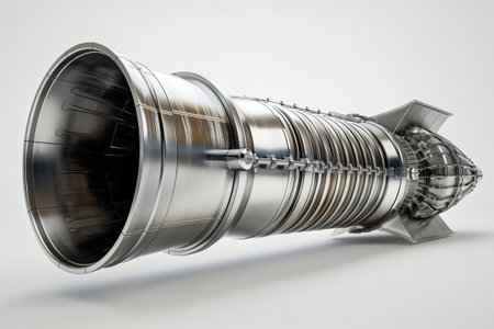 Sleek rocket engine nozzle on white background symbolizes advanced technology and space exploration. Perfect for design and tech projects