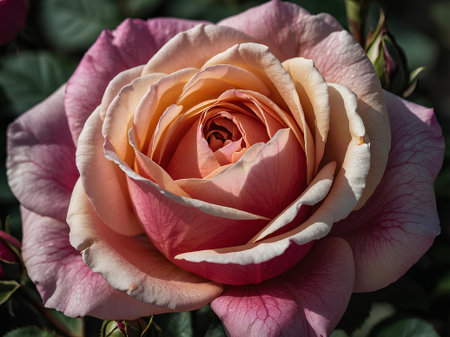 A stunning close-up of a pink rose showcases its rich textures and colors. The soft focus emphasizes the flower's beauty, perfect for nature enthusiasts.