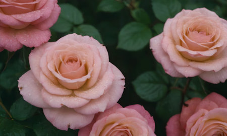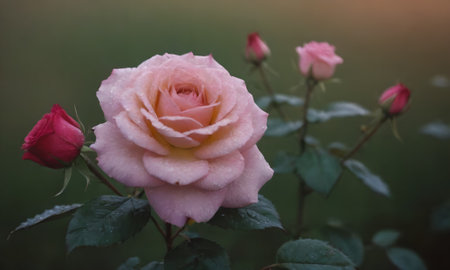 Pink roses are blooming. Roses with a dark pink color symbolize gratitude and appreciation. Roses with a paler pink color are used as a symbol of gentleness and are often given in activities that involve sympathy.