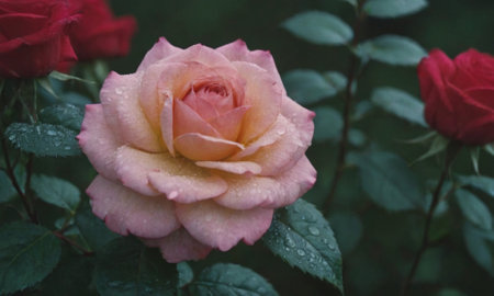 A Captivating Close-Up: Vibrant Red and Delicate Pink Rose in Stunning 3:2 Aspect Ratio