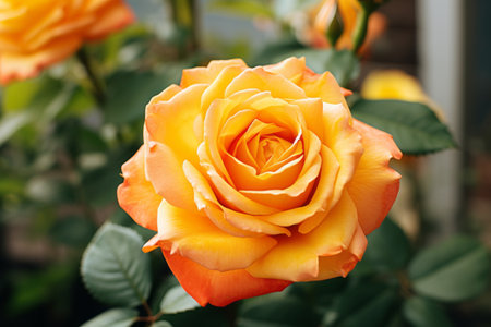 Vibrant Blossoms: Capturing the Radiant Beauty of a Yellow-Orange Rose in Close Up