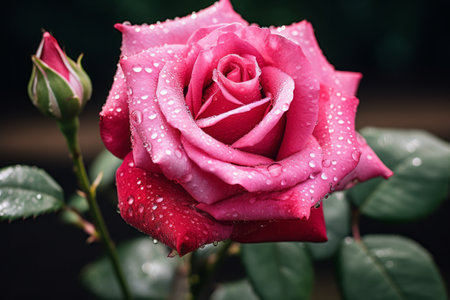 Beautiful red rose with droplets showcasing elegance and freshness in natural light