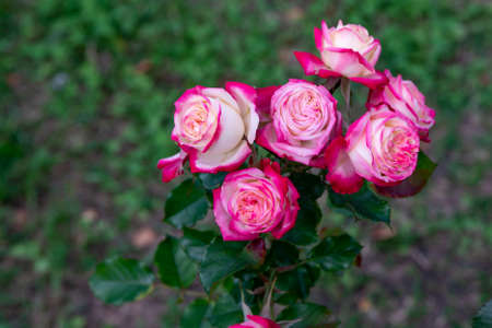 Beautiful pink roses in the garden. Floral background. Soft focus.