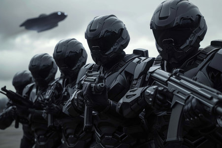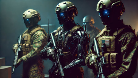 Modern army war cyborgs content created with generative AI software.