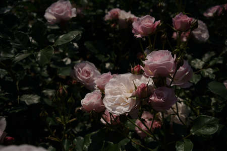 Beautiful pink roses in the garden. Vintage style. Selective focus.