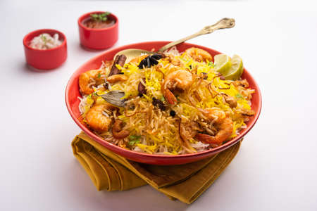 Tasty and delicious prawns biryani, jheenga pulav or shrimp pilaf
