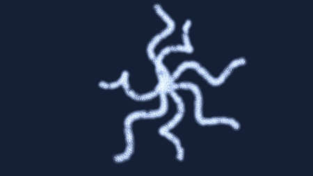 Abstract 3d render of swirling particle strands with a soft focus on a colorful pastel background