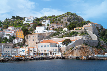 Greece, Thessaloniki gulf, the island of Hydra village seen from the sea