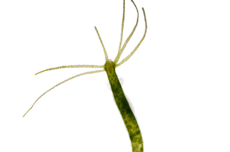 Hydra vulgaris dark field. Underwater microcosm, Hydra feed.