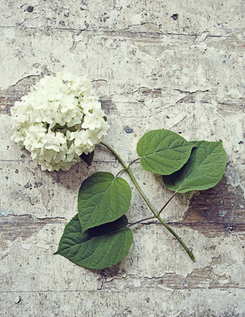 branch of white hydrangeas, retro image