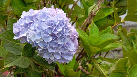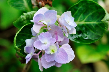 Hydrangea pale purple flowers blooming