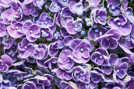 Flowers background. Top view of purple hortensia or hydrangea flower. Summer concept