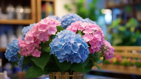 Colorful hydrangea flowers background, Hydrangea macrophylla