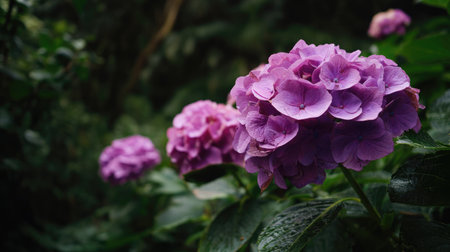 composition hydrangea purple illustration structure clusters, visual impact, lighting elegance composition hydrangea purple