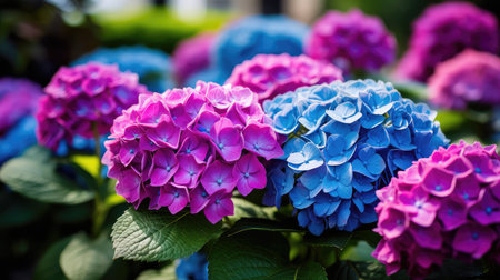 Colorful hydrangea flowers in the garden, stock photo