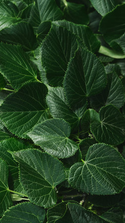 Green leaves background. Green leaves with copy space. They are color tone dark. Green Leaves Texture widescreen, vertical Background. photo concept nature and plant.