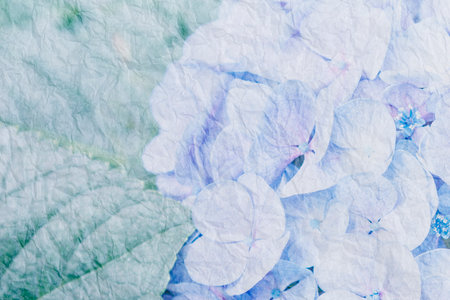Beautiful blue and purple blooming hydrangea flowers, close up. Floral texture for background.