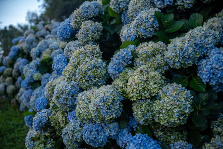 huge colorful hydrangea flowers on the azores islands