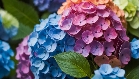 Vibrant Parade of Multicolored Hydrangeas: A Delicate Petal Wonderland – AR 3:2