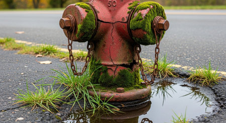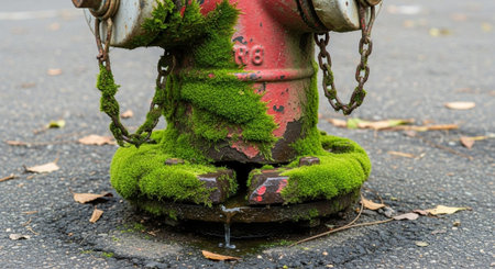 A close-up view of a red fire hydrant showcasing water droplets during rain, symbolizing urban emergency readiness and maintenance essentials in city life.