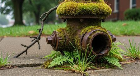safety fire hydrant with hose illustration emergency corner, sidewalk grass, trees background safety fire hydrant with hose